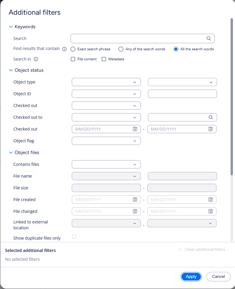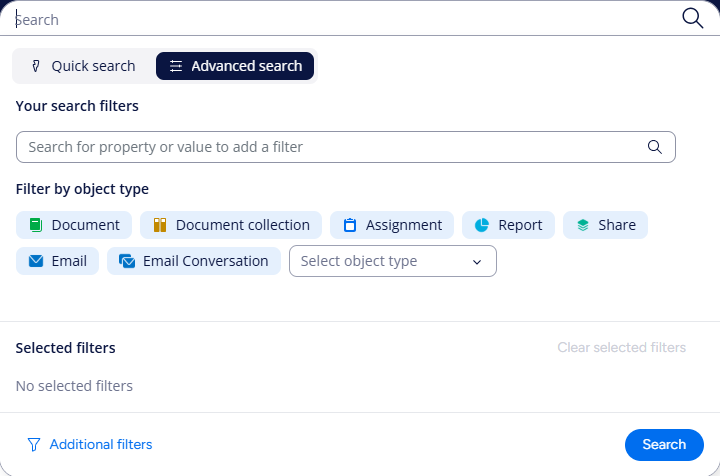 In the new Desktop, Advanced search for the most used Property Search has been made in a way that lets you add as many properties as you wish. The more rarely used advanced filters can also be accessed through the same screen.