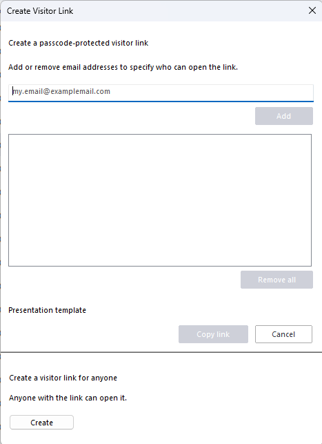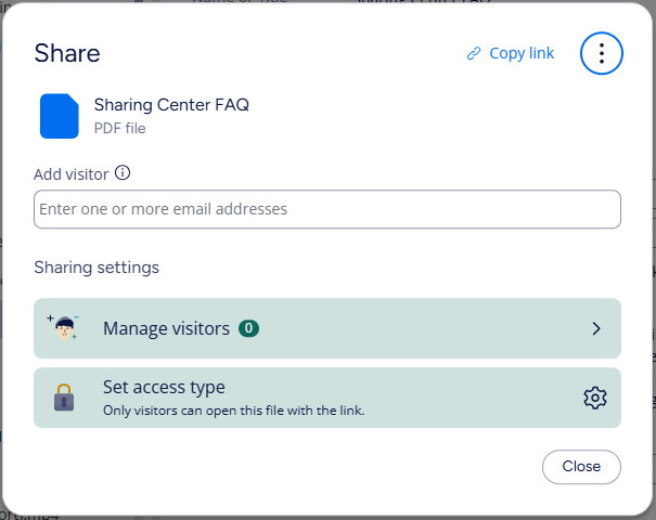- Create Visitor Link – Available through the Sharing Center found in the context menu