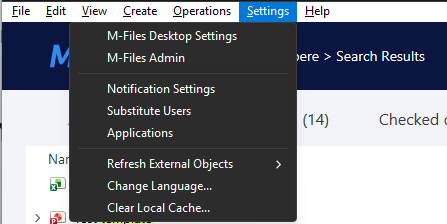 In M-Files classic Desktop, pressing the Alt key would open up a top menu through which it was possible to get to M-Files Settings, the context menu of an object, create objects, and change many Windows Explorer-related view settings.