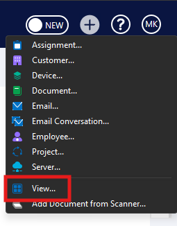 On top of the Create menu, when viewing all views in the new Desktop, view creation can also be initiated at the bottom right of the listing pane.