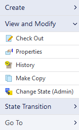 - History – Available through context menu of an object