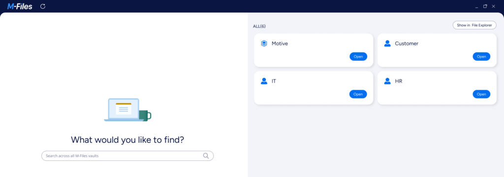 Withe the new Desktop a new home screen contains Global Search which lets users search for content across all vaults to which they are logged in.