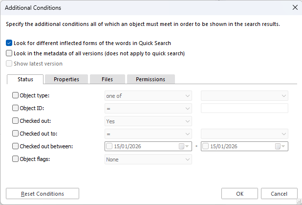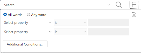 In the classic Desktop, Advanced search was accessed by clicking the search bar for the first two properties, but additional properties were under “Additional Conditions” making the user experience somewhat illogical and disjointed.
